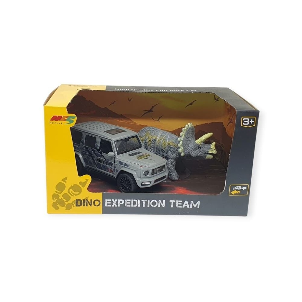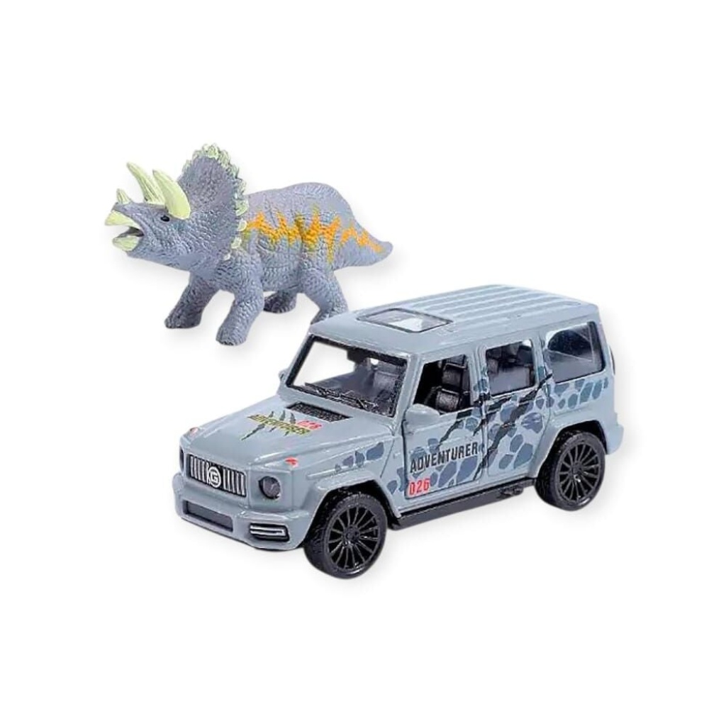 Çek Bırak Araç ve Dinazor Oyun Seti - 6843-2D- Gri Paket içerisinde 1 adet araba ve dinazor figürü bulunmaktadır. Araçların üst kısımları metal , alt kısımları plastik malzemeden üretilmiştir. Araba çek bırak özelliklidir ve kapıları manuel olarak açılabilmektedir. Araba 11 x 4 x 4 cm boyutlarındadır.