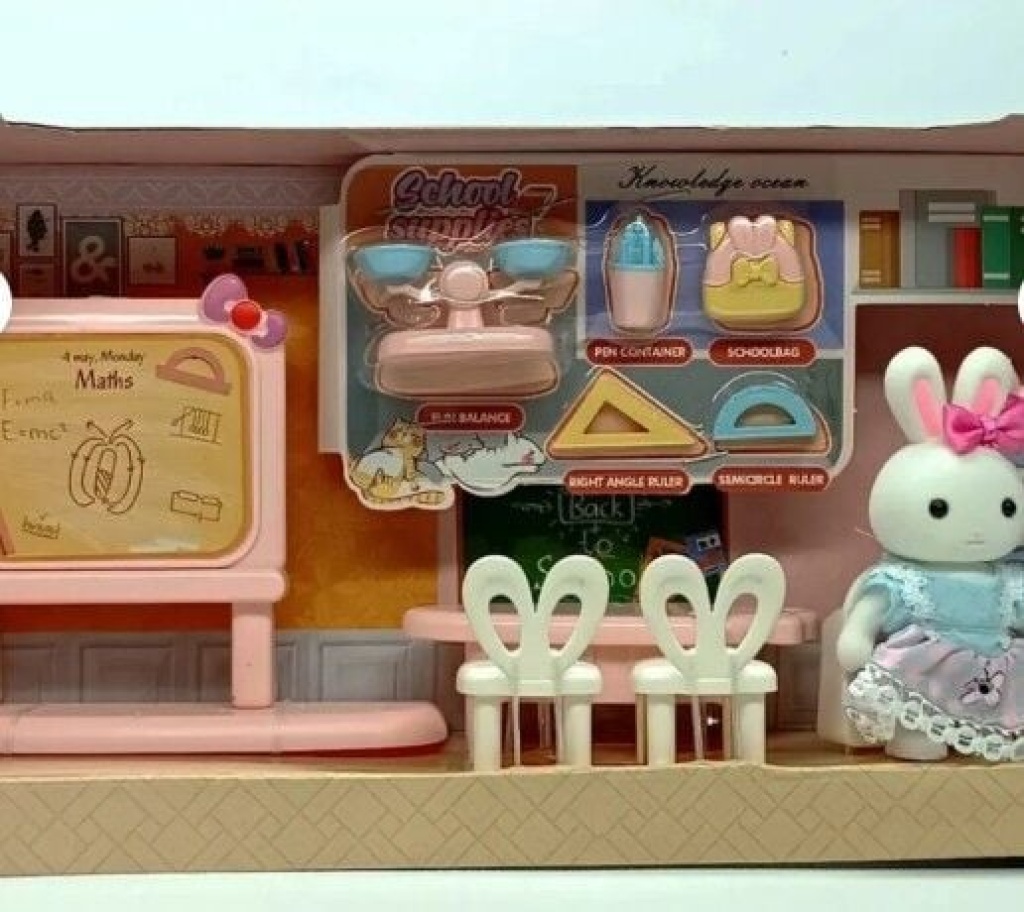 Bu minyatür tavşanın tasarımı, bir taburesi, aslıkları, takı seti ve şifonyeri ile birlikte gelen sevimli bir tavşandır.